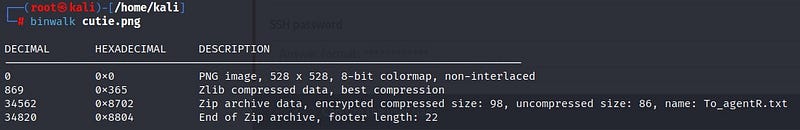 We can examine the images using the “binwalk” tool. Binwalk is a tool that examines images for embedded files.