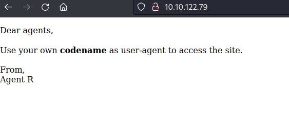 We are presented with a message that says we need to enter a codename in the “user-agent” format to access the site. This information is from an agent named Agent R. We cannot find any other information here.