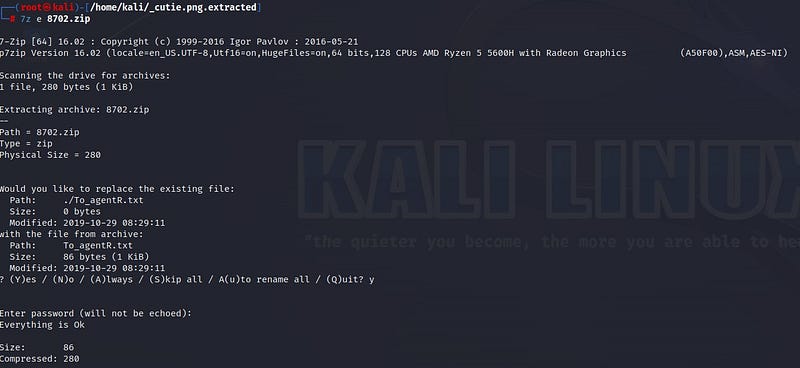 Area51! So, what is this password for? There was one last image we didn’t look at. Let’s extract the image using the “steghide” tool and enter the password we found.