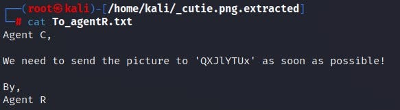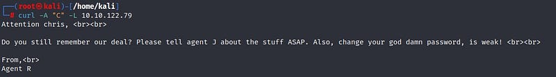 We got a result starting with the letter “C”! We reach a message sent to an agent named Chris. It is mentioned that Chris’s password is weak. Let’s try to crack Chris’s password using the Hydra tool.