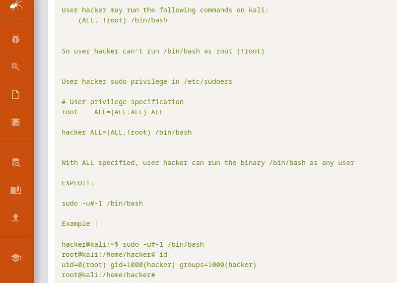 We come across interesting information like (ALL, !root) /bin/bash. Let’s search on Google.