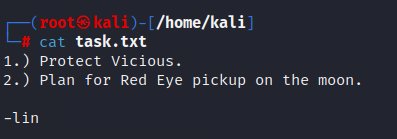 Let’s take a look at the contents of the files one by one. In the “task.txt” file, we find a message from someone named “lin”.