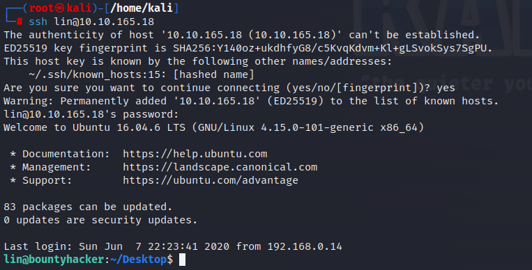 Voila! We’ve found the password for the “lin” user. Now it’s time to make the SSH connection.