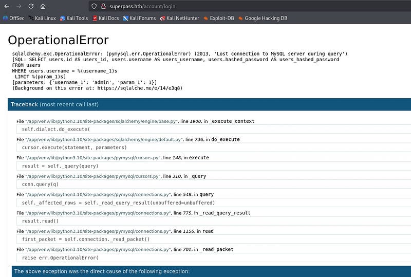 After investigate the page a bit, we encounter an error screen.
