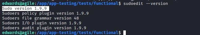 When we check the sudoedit version, we see that it is vulnerable to CVE-2023–22809. With this vulnerability, an attacker can inject extra arguments (using --) via user-provided environment variables; this allows edwards, as dev_admin, to write to files beyond the two permitted ones.