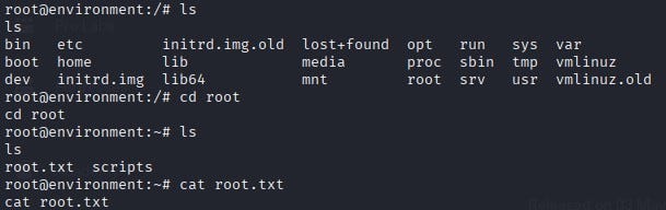 The root flag was obtained at “/root/root.txt”.