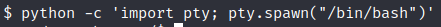 Here, we encountered an error. Currently, we have an unstable shell, so we’re not in the terminal. To transition to a stable terminal, let’s run the following Python command: