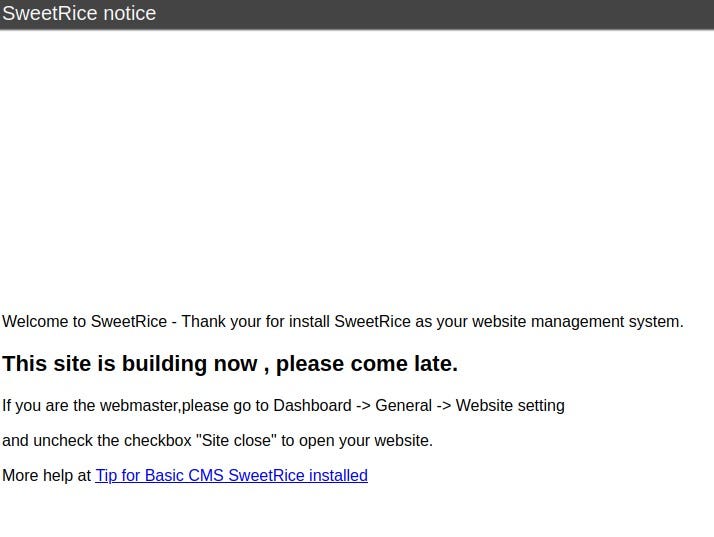 We encounter the SweetRice page. The page mentions that the site is currently under construction. From here, we can look for exploits for SweetRice, but first, I wanted to use the “dirbuster” tool to see if we can find more information.