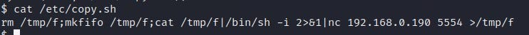 Inside /etc/copy.sh, we see that a netcat reverse shell listener is running. We can also verify this from the Pentestmonkey site.