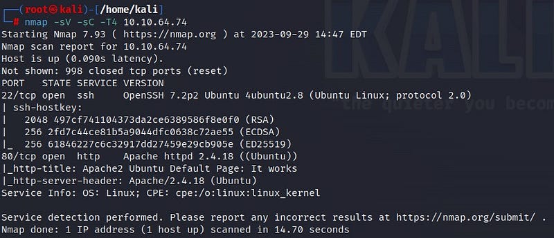 According to the scan results, there are 2 open ports: port 22 SSH and port 80 HTTP. Let’s take a look at the web page.