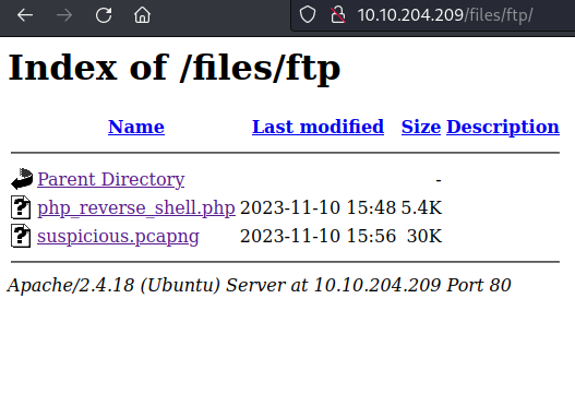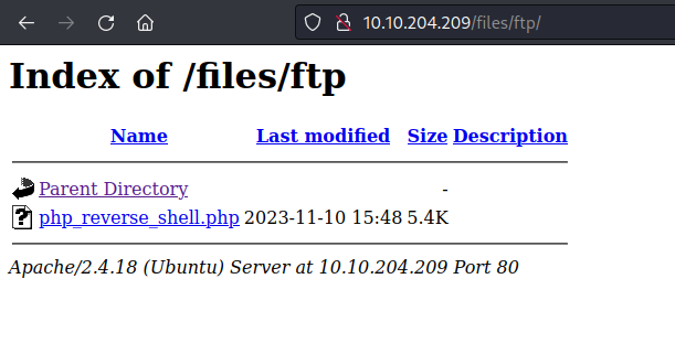 We find a subdirectory named ‘/files’. When we go there, we see the same information we obtained from the ftp login.