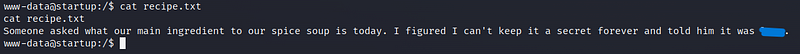 Then, with the ‘ls’ command, I see a file named “recipe.txt”. When I enter it, I reach our first flag.