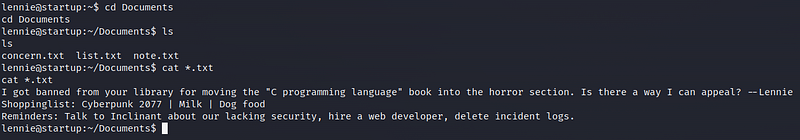 Now it’s time for the root stage! First, let’s examine the Documents section under the lennie user. There are three txt files here. When we look at their contents, we don’t get any useful information.