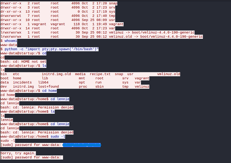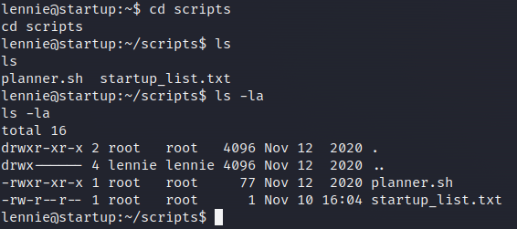 Again, using reverse shell, we become the Lennie user. From here, let’s go to the /home/lennie directory and obtain the “user.txt” flag.