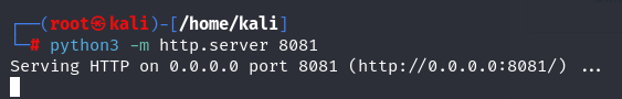 To be able to upload the “reverse.sh” file to the other side, we open an HTTP server.