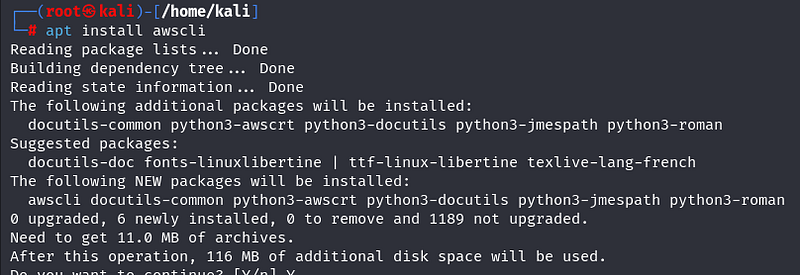 “awscli” is used to interact with AWS services. If it’s not installed, install awscli.