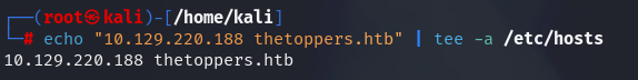 By adding the domain information to the /etc/hosts file, we can directly access the website by typing “thetoppers.htb” in the web browser without DNS resolution. The /etc/hosts file can be thought of as an address book. It allows us to access the site directly with the domain name without typing the IP address.