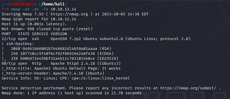 According to the scan results, 2 ports are open: 22 ssh and 80 http. It seems that the web page displays the Ubuntu default page. Let’s inspect the page source.