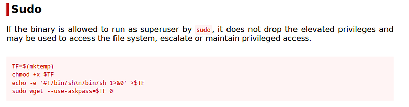 We see that we can run “/usr/bin/wget” with root privileges. Let’s research this on the internet.