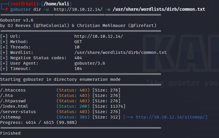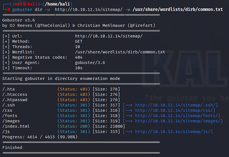 Upon inspecting the page, we don’t find any useful information. Since the page consists of many components, let’s try searching under the “/sitemap” directory. To do this, I’m using gobuster again, but this time, I’m scanning for a specific directory.