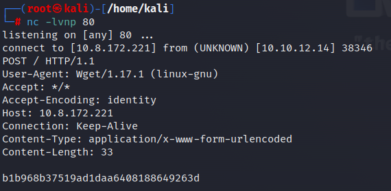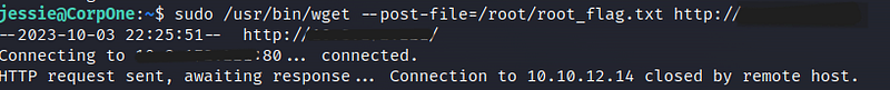 We can find the exploit information on the Gtfobins page. According to this, we can use the wget command to retrieve any file from the system. For this purpose, I open a netcat listener in my own terminal.