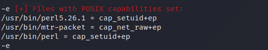 When we examine the results, we see that perl can be executed with setuid bits. This allows us to escalate to the root user.