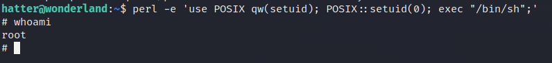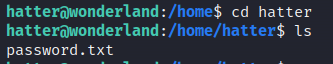 In the Hatter user’s directory, there is a file named “password.txt” containing the password of the hatter user. We can use this password to switch to the hatter user.