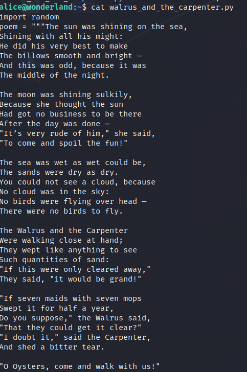 In this write-up, I present the solution for the TryHackMe room called Wonderland. Link of the room is: