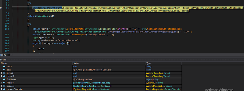Wxorm zararlısı bulaştığı sistemde “Microsoft Edge.exe” isimli payload dosyasını oluşturur. Oluşturduğu payload dosyası içerisine zararlı kodlar ekler. Dosya farklı bir işlev içermemekle birlikte zararlının fark edilmemek amacıyla oluşturduğu kendi kopyasıdır.